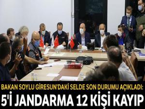Tirebolu-Doğankent yolunun kapalı olduğunu kaydeden Bakan Soylu Maalesef Tirebolu-Doğankent yolu üzerinde Doğankent'e giderken bir jandarma aracımız içinde 5 jandarmamızın bulunduğu araç yolun 12. km'sinde bir menfezde maalesef suların içine gömülü kaldı. Jandarma Bölge Komutanımız orada, arama kurtarma timlerimiz orada aracı görüyorlar ama ulaşamıyorlar. Bir iş makinesi ve bir operatör de maalesef kayıp. Yani Tirebolu-Doğankent yolunda 5 metrelik bir menfezin çökmesi ve menfezin üstünden araçların geçmesi esnasında 5 jandarmamız bir de operatörümüz kayıp olduğunu söyleyebiliriz. Arama kurtarma çalışmalarımız devam ediyor şeklinde konuştu.
