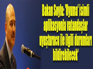 "Vatandaşlarımızın uyuşturucu ile ilgili durumları kolaylıkla bildirebilmeleri için 'Uyuma' isimli bir aplikasyon yaptık" diyen Soylu, "Şu ana kadar 26 bin 178 kişi bu uygulamayı indirdi ve 2 bin 405 ihbar yapıldı. Henüz bu bir başlangıç ama sayı halen çok az. Lütfen her anne ve baba bu aplikasyonu mutlaka telefonlarına indirsin. Bildirdiği andan itibaren çok kısa süre içerisinde emniyet görevlilerimiz olay yerinde olmaktadır. Gördüğü şüpheli durumları mutlaka bu uygulama üzerinden bize bildirsin" açıklamasında bulundu. Bakan Soylu, "Narko-rehber" ve "Narko-tır" gibi projelerle önemli eğitim faaliyetleri yürüttüklerini de hatırlattı.