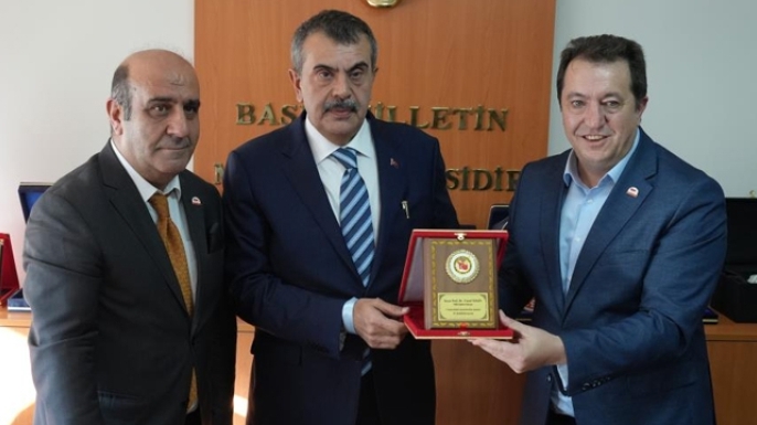 Ziyaret sonunda DAGC Başkanı Türkez ve DGF Başkanı Tarakçıoğlu, Bakan Tekin’e ziyareti anısına bir plaket sundu.