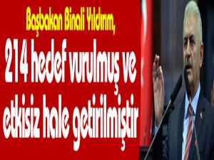 Operasyonda gelinen son aşamaya değinen Başbakan Yıldırım ise, "Terör, dünyanın başının belası. İnsanlığın ortak sorunu. İster Nijer'de, ister Avrupa, ister Türkiye, İster Pakistan'da olsun, dünyanın neresinde olursa olsun terör masum ve mazlum insanları gözünü kırpmadan öldüren, istikrarı bozan ve ülkelerin huzuruna kasteden alçak örgütlerdir. Bunların adının ne olduğunun önemi yok, hepsinin hedefi aynıdır. İnsanlara karşı zulüm etmek, böylece ülkelerin güvenliğini ve istikrarını zaafa uğratmak. Terörün her türlüsüyle amansız bir mücadele veriyoruz. En son başlattığımız operasyonun amacı da Suriye'nin toprak bütünlüğünü sağlayacak ve bölgede terör oluşumlarına son verecek, orada yaşayan Kürt, Türkmen, Arap kardeşlerimizin üzerinde zulmü kaldıracak. Afrin bölgesinden ülkemize vaki saldırıların önüne geçecek. Ülkemizin ve sınırlarımızın güvenliği amacıyla bu operasyon başlamıştır. Şu ana kadar planlandığı gibi operasyon devam ediyor. 214 hedef vurulmuş ve etkisiz hale getirilmiştir. Alanda temizlik çalışmaları sürdürülüyor. Bölgenin terörden, PKK, YPG, PYD bunlar hepsi aynı terör örgütü ve DEAŞ'tan tamamen temizleninceye kadar ülkemize yönelik, bölgede yaşayanlara yönelik hiçbir silahlı tehdidin kalmayacağı anlaşılıncaya kadar bu operasyon sürecek. Planladığı gibi gidiyor, herhangi bir sorunumuz yok şuan" diye konuştu.