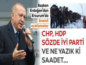 İşte şu anda kim kimle kol kola... CHP, HDP, sözde İYİ Parti ve ne yazık ki Saadet Partisi... 4'ü bir araya gelmişler. 'Kişi sevdikleriyle beraberdir' Söyle bana arkadaşını söyleyeyim sana kim olduğunu.. Ya huyundan ya suyundan ya dilinden bir yerinden kapacak. CHP ile kol kola olan ne olacak. Onlar gibi olacak. Aynı şekilde HDP ile... Bizim ittifakımızın adı Cumhur İttifakı... Nerede başladı? 15 Temmuz'da başladı. Yenikapı ruhuyla yürüyoruz. Pazara kadar değil, mezara kadar.