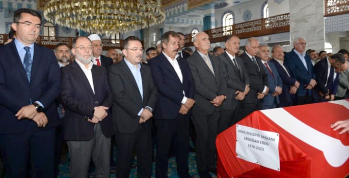 Erdoğan Eren dün ikindi namazını müteakip Hınıs Merkez Camii'nde kılınan cenaze namazının ardından toprağa verildi. Hınıs’taki cenaze törenine; Çevre, Şehircilik ve İklim Değişikliği Bakanı Mehmet Özhaseki, AK Parti Genel Başkanvekili Efkan Ala, Genel Başkan Yardımcısı ve Yerel Yönetimler Başkanı Yusuf Ziya Yılmaz, Erzurum Valisi Okay Memiş, Erzurum Büyükşehir Belediye Başkanı Mehmet Sekmen, AK Parti Erzurum Milletvekilleri Selami Altınok, Mehmet Emin Öz ve Abdurrahim Fırat, AK Parti Sakarya Milletvekili Ali İnci, Eski Sağlık Bakanı Recep Akdağ, Ak Parti İl Başkanı İbrahim Küçükoğlu, ilçe belediye başkanları, AK Parti teşkilatları, kamu kurum ve kuruluşlarının yöneticileri, vatandaşlar ve ailesi katıldı.