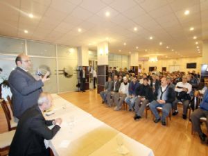 Aziziye Esnaf Sanatkarlar Odası Başkanı Selim Alak ile Ilıca Mahalle Muhtarı Timur Meral'in de katıldığı toplantıda esnaflarla bir araya gelen Başkan Orhan, ilçedeki kentsel dönüşüm çalışmaları hakkında bilgi verdi, yeni dükkan fiyatlarını açıkladı. Ilıca Eski Mahalle ikinci etapta yapımına başlanan 380 konut 114 işyeriyle ilgili esnafları bilgilendiren Başkan Orhan, mevcut işyerlerinin metrekaresinin ortalama bin 800 liradan alınacağını ve yeni yapılacak 114 işyerinin tapu sahiplerine KDV dahil 2 bin 500 liradan, kiracılara ile yine KDV dahil 3 bin liradan satılacağını kaydetti. Orhan, kiracılar için de rakamın aşağı çekilmesi hususunda görüşmelerinin sürdüğünü sözlerine ekledi.