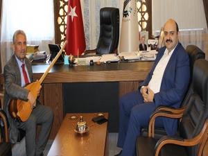 Başkan Orhanın aşıklık geleneğine ve yakında baskısının yapılması planlan Divandan Dökülenler adlı şiir kitabına verdiği desteklerden ötürü teşekkür ziyaretinde bulunan Aşık Rahim Sağlam, bağlamasının eline aldı ve sazını sözüne kattı.