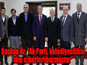 AK Parti Erzurum İl Başkanı Mehmet Emin Öz, Belediyecilik hizmetleri anlamında da tüm ezberleri bozan tek parti, AK Partidir. 2002 yılından beri AK Davamıza gönül veren milletvekillerimiz, yerel yöneticilerimiz ve Erzurum Büyükşehir Belediye Başkanımız Mehmet Sekmen ile birlikte şehrimiz AK Belediyecilikte de adeta zirveye çıkmıştır dedi. AK Parti Erzurum İl Başkanı Öz, seçim startının verildiği andan itibaren başladığı ilçe gezilerini aralıksız sürdürürken, seçim çalışmaları kapsamında teşkilat toplantıları, ev sohbetleri ve esnaf ziyaretleri de gerçekleştiriyor. AK Partinin seçim işleri komisyonları ile de sık sık bir araya gelen ve durum değerlendirmesi yapan Mehmet Emin Öz, gençlerle buluşmayı ihmal etmediği gibi, AK Partili belediye başkan adaylarını da yalnız bırakmıyor. Bulunduğu her ortamda yerel yönetimlerin ve özellikle de belediyeciliğin ihtisas gerektiren bir alan olduğuna dikkat çeken Mehmet Emin Öz, AK Parti, belediyecilikte de müseccel bir markadır. AK Parti, Türkiyede belediyeciliği yeniden tanımlanış ve yerel yönetimler alanında bilindik tüm ezberleri bozmuştur vurgusunu yapıyor.