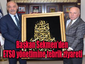 Ziyarette Başkan Sekmen, ETSO Yönetim Kurulu Başkanı Yücelike, filografi ile yapılmış Ayet-i Kerime işli bir tablo ve Büyükşehir Belediyesinin logosunun yer aldığı seramik bir tabak hediye etti.