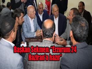 AK Parti yatırımlarını vatandaşlara anlatan Başkan Sekmen, Erzurum 24 Hazirana hazır dedi. İspirden Çata, Şenkayadan Hınısa kadar adım atmadık yer bırakmayan Başkan Sekmen, Erzurumun 24 Haziran seçimlerini sabırsızlıkla beklediğini ifade etti. AK Belediyecilik şiarıyla bugüne kadar Erzuruma yapılmayan yatırımları kazandırdıklarını belirten Başkan Sekmen, Prestij caddeleri, fuar alanı, mesire alanları, merkez ve mahalle yollarında yapılan iyileştirmeler, kentsel dönüşüm, Yüksek İrtifa Kamp Merkezi ve daha birçok yatırımı Erzuruma kazandırmanın mutluluğunu yaşıyoruz. Cumhurbaşkanımız Sayın Recep Tayyip Erdoğanın bu şehre olan sevdasını anlatmaya gerek yok. Bu projelerin tümü Cumhurbaşkanımızın talimatlarıyla gerçekleştirildi dedi.