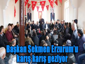 Esnaf ziyaretleri ve ev toplantılarında Erzurumun gelişim seferberliğine dikkat çeken Sekmen, bu seferberliğin sürmesi için 31 Mart seçimlerinin önemli bir dönemeç olacağının altını çizdi.