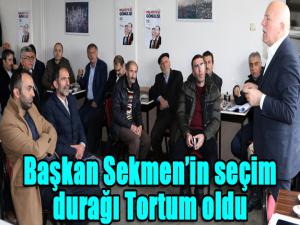 İlçe merkezinden başlayarak, Uzunkavak, Serdarlı, Aşağı Serdarlı, Dikmen ve Bağbaşı mahallelerine çıkarma yapan Başkan Sekmen, kendisini büyük bir coşkuyla karşılayan seçmenlere 31 Martın önemini anlattı. Sekmen, Tortumlu seçmenlere seslenerek; 17 yıldır nasıl ki son sözü siz söylediyseniz, bu seçimlerde de yine son söz sizin olacak, son söz milletin olacak dedi. Büyükşehir Belediye Başkanı ve aynı zamanda Cumhur İttifakının Erzurum Büyükşehir Belediye Başkan Adayı olan Mehmet Sekmen, seçim çalışmaları kapsamında Tortum ilçesine çıkarma yaptı. İlçe gezisine merkezdeki esnaf ve işyerlerini ziyaret ederek başlayan Başkan Sekmen, yine birbirinden önemli mesajlar verdi, 31 Mart seçimlerinin önemine işaret etti.