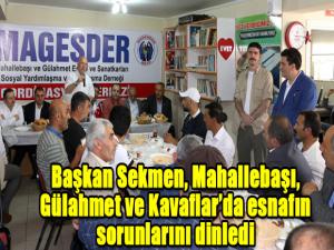 Başkan Sekmen, Mahallebaşı ve Gülahmet Esnaf ve Sanatkârları Sosyal Yardımlaşma ve Dayanışma Derneğinde (MAGESDER) Mahallebaşı ve Gülahmet esnafıyla buluştu. MAGESDER Başkanı Abdurrahman Oğuzun da bulunduğu toplantıda konuşan Başkan Sekmen, Ticarette birliğin, beraberliğin ve dirliğin temsilcisi olan esnafımızın problemlerinin çözümü için var gücümüzle çalışıyoruz. Esnafımızın sorunlarını Ankaraya, Devlet büyüklerimize aktarıyoruz şeklinde konuştu.