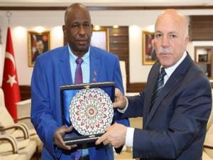Makamda gerçekleşen görüşmede, Sudan ve Türkiye ilişkileri ele alındı, Erzurum özelinde görüş alışverişinde bulunuldu. Sudan Değişim Hareketi'nin Lideri Dr. Waheeb İbrahim Haroun, beraberinde Avrasya Yerel Yönetimler Birliği Genel Başkanı Hasan Cengiz'le birlikte Erzurum Büyükşehir Belediye Başkanı Mehmet Sekmen'i ziyaret etti.