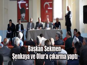 Başkan Sekmen, ilçe gezilerinde Şenkaya Belediye Başkanı Görbil Özcan ile Olur Belediye Başkanı Tahsin Oktayı da ziyaret etti. Başkan Sekmen, AK Parti Erzurum İl Başkanı Mehmet Emin Öz ile birlikte esnafın sorunlarını dinledi, vatandaşlarla hasbihal etti. Başkan Sekmen ve beraberindekiler Şenkayada Kaymakam Hüseyin Karameşe Parkının açılışını da gerçekleştirdi. Sekmen, ilçe gezileriyle ilgili yaptığı değerlendirmede, Şura Toplantıları kapsamında Şenkaya ve Olur ilçelerinde vatandaşlarımız ve yerel yönetimin banisi olan muhtarlarla bir araya geldik. Bu toplantıları 4 yıldır aralıksız sürdürüyoruz. İlçe yatırımlarının ortak istişareyle şekillendiği bu toplantılarda halkımızın istek ve taleplerini de değerlendirerek problemleri en asgari seviyeye çekiyoruz dedi.