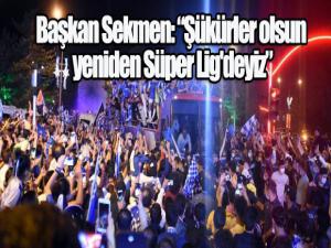 Büyükşehir Belediye Erzurumspor, bir yıl aradan sonra yeniden Süper Lig'e yükseldi. Sezonun son karşılaşmasına Kazım Karabekir Stadyumu'nda Ümraniyespor'la çıkan mavi beyazlı ekip, sadece maçı kazanmakla kalmadı, aynı zamanda Süper Lig biletini de kestirmiş oldu. Ümraniyespor'u 4-1'lik skorla deviren Büyükşehir Belediye Erzurumspor, ikinci kez Süper Lig'e çıkmaya hak kazanırken, mavi beyazlı kulübün Onursal Başkanı Mehmet Sekmen de, şampiyonluk coşkusunu doyasıya yaşayanlar arasındaydı. Karşılaşmayı başından sonuna kadar takip eden Büyükşehir Belediye Başkanı Mehmet Sekmen, hakemin son düdüğüyle birlikte soluğu yeşil sahada aldı. Futbolcular ve teknik heyetle teker teker kucaklaşan Sekmen, elindeki Erzurumspor bayrağıyla stadyumda hem tur attı, hem de mavi beyazlı ekiple beraber protokolü selamladı.