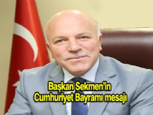 Başkan Sekmen, mesajında şu görüşlere yer verdi: "Cumhuriyetimiz, 92 yıldır milletimizin esin kaynağı olmaya devam ediyor. Ülkemizin işgali karşısında tek vücut olan halkımız, Türkiye Cumhuriyeti'nin kurucusu Gazi Mustafa Kemal Atatürk'ün öncülüğünde tarih ve destanlar yazmıştır. Dünya tarihinde Milli Mücadelesini yürüterek devletini kuran, kahraman bir Meclis'e sahip tek ülke olmanın gurur ve onurunu yaşıyoruz. Cumhuriyet; korumamız ve yaşatmamız gereken en değerli varlığımızdır. Milletimizin Cumhuriyet ile perçinlenen onurlu ve özgür yaşama tutkusu, zaman içinde kurumsallaşan demokrasiyle birlikte zirveye çıkmıştır. Bugün; demokratik ve sosyal bir hukuk devleti niteliğindeki dinamik Türkiye Cumhuriyeti'nde hepimiz, 2023 hedefiyle birlikte mutlu ve müreffeh yarınlara doğru ilerlemenin sevinç ve huzurunu yaşıyoruz. Bu durumda her bir vatandaşımıza, hemşerilerimize düşen en büyük görev; birlik ve beraberliğimizden ödün vermeden daha güçlü bir Türkiye için çalışmaktır. Son günlerde yaşanan terör olayları ve şehit haberleri hepimizi derinden üzmüştür. İnsanlık dışı bu olaylar, Türkiye Cumhuriyeti Devleti'ni canıyla, kanıyla kuran; doğulusu, batılısı, kuzeylisi, güneylisiyle aziz milletimizin bu güzel vatan toprağını koruma azmini yeniden canlandırmıştır. Ay yıldızlı bayrağımız ve Vatanımız için canlarını seve seve feda eden kahraman şehitlerimize Yüce Allah'tan rahmet, ailelerine başsağlığı diliyor, gazilerimize de şükranlarımı sunuyorum. Bu vesileyle Gazi Mustafa Kemal Atatürk başta olmak üzere, devletimizi kurup cumhuriyetimizin ilanında emeği geçen herkesi rahmet ve minnetle anıyor; hemşerilerimin Cumhuriyet Bayramı'nı tebrik ediyorum."