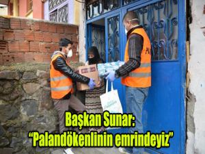 Özellikle yaşlı nüfus ile birlikte ilçede yaşamlarını sürdüren kronik hastalığı bulunan vatandaşlar ve engellilerin özel hizmetinde olan PALTİM'in işleyişine dair bilgiler veren Başkan Sunar, Korona virüs musibetinin duyulmasıyla birlikte Palandöken Belediyesi olarak hemen harekete geçtik. Bu salgınla mücadele noktasında önce yapılabilecekleri masaya yatırdık. Sağlık Bakanlığımızın uyarı ve önerilerine dikkat kesildik. İlçemizin dezenfeksiyonu için 50 kişiden oluşan 25 ekip oluşturduk. Ekiplerimiz, aldıkları eğitimden sonra sahaya çıktı. Toplu yaşam alanlarına öncelik vererek, ilçemizin bugün her noktasına ulaştırdığımız dezenfeksiyon işlemlerini gerçekleştirdi. Palandöken Belediyesi Toplum İletişim Merkezi (PALTİM)'i hizmete aldık. Burada da 15 kişilik bir ekiple hizmet veriyoruz. Toplum sağlığını düşünerek evde kalan, ileri yaş grubunda bulunan nüfusun ihtiyaçlarını kapıya teslim etmenin yanı sıra çağrı merkezi hizmeti de veriyoruz. Bugün itibariyle 860 aileye hizmet vermiş durumdayız. 65 kişilik bir ekiple çalışma yürütüyoruz. Hassasiyetle, özveriyle görevini yerine getiren ekibimizi yürekten kutluyorum. Palandökenlinin sağlığı ve mutluluğu için mesai harcayan arkadaşlarıma minnettarız diye konuştu.