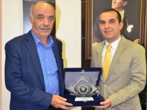 Başkan Yücelik, ziyaretin sonunda Kaymakam Taşolar'a hizmetlerinin anısına bir plaket takdim etti.