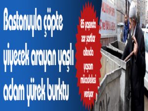 Erzurum'da yaşayan 85 yaşındaki Hüseyin Çanmasır, bastonu ile karıştırdığı çöplerde yiyecek bulmaya çalışıyor.