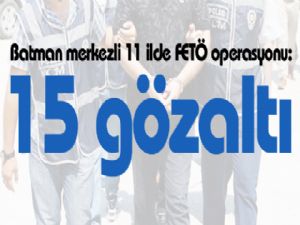 Batman merkezli 11 ilde yapılan Fethullahçı Terör Örgütü-Paralel Devlet Yapılanması (FETÖ/PDY) operasyonunda 15 kişi gözaltına alındı.