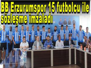 TFF 1. Lig ekiplerinden BB Erzurumspor, yeni sezonda transfer ettiği 15 futbolcu ile sözleşme imzaladı. Geçtiğimiz sezon takımda olan ve yeni sezon içinde sözleşme yenileyen Gabriel Obertan haricinde yeni transferler Mickael Pote, Yusuf Emre Gültekin, Tunay Deniz, Osman Çelik, Oltan Karakullukçu, Gökhan Kardeş, Cenk Ahmet Alkılıç, Cem Barlık, Batuhan Artarslan, Hasan Hatipoğlu, Mehmet Murat Uçar, Aykut Demir, Mücahit Albayrak ve Batuhan Ünsal, kendilerini mavi-beyazlılara bağlayan sözleşme imzaladı.