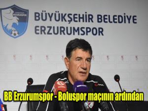 Boluspor Teknik Direktörü Giray Bulak ise mağlubiyetten ders çıkaracaklarını belirterek, Hakem arkadaşları iyi maç yönettiği için tebrik ederim. Zor maç olacağını biliyorduk. Rakip 10 kişi kalınca pas geçişlerini daha iyi yapmamız lazımdı. İstatistiklere baktığımız zaman Boluspor önde. Ama sonuca bakarsak Boluspor mağlup durumda. Birbirini tanıyan ve geniş kadrolu bir takıma karşı oynadık. Rakibin tecrübesi bizden daha üsteydi. Ekibimizi daha yeni kuruyoruz. Kale, savunma ve orta sahamız yeni. Geçiş oyunlarında gol bulmamız lazım. Milli takım arasına gireceğiz. BB Erzurumspor'a karşı bu kadar baskın oynayacak başka takım gelmeyecek. Biz bu maçtan ders çıkaracağız. Sonuçlar bize yakışmıyor. Gelen oyuncuların katılımıyla daha iyi bir takım olacağız. Rakibin kırmızı kart yemesi adeta bize talihsizlik yaşattı şeklinde konuştu.