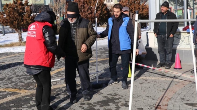 Erzurum'un Oltu ilçesinde vatandaşlar görme engelli bireylerin günlük hayatta karşılaştıkları zorlukları deneyimlediler.