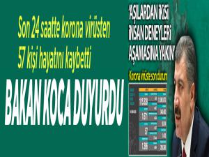 Bakan Koca, Türkiye'de son 24 saatte 1671 kişiye koronavirüs tanısı konulduğunu, 57 kişi hayatını kaybettiğini açıkladı.