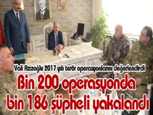 Çevre illerle koordineli olarak sürdürülen bu operasyonlara 9'uncu Kolordu Komutanlığının da destek verdiğini kaydeden vali Azizoğlu, "Bu sayede vatandaşlarımıza huzur ve güvenli bir ortam sağlanmıştır. Operasyonlara kış mevsimi boyunca devam edilecektir. Jandarma ve Polis tarafından yapılan operasyonlar neticesinde 284 PKK/KCK, 55 DEAŞ ve 847 FETÖ/PYD terör örgütü mensubu olmak üzere toplam bin 186 şüpheli yakalanarak adli makamlara sevk edilmiş olup, bunlardan 403'ü tutuklanmış, 495'i adli kontrol kararıyla serbest bırakılmıştır" dedi.