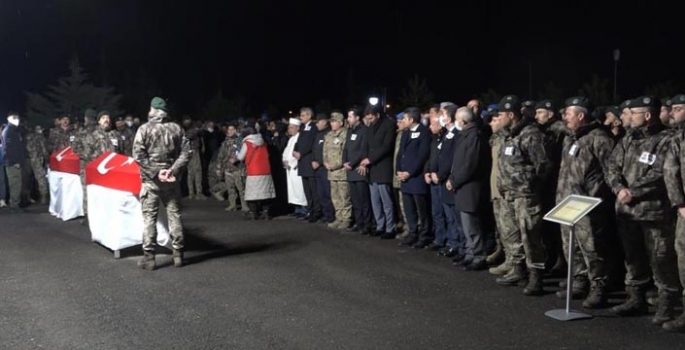 Törende şehitlerin eşlerinin sözleri de yürekleri dağladı. Şehit Necati Aygün’ün eşi Gülçimen Aygün, tabutun başına gelerek, “Nereye bıraktın gittin sen bizi aşkım. Canımın içisin sen benim her şeyimdin aşkım” diyerek eşiyle vedalaştı.