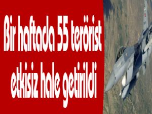 Türk Silahlı Kuvvetleri (TSK), bir hafta içinde gerçekleştirilen Teröristle Mücadele Harekatı kapsamında biri sözde lider kadrosunda olmak üzere 55 teröristin etkisiz hale getirildiğini açıkladı.