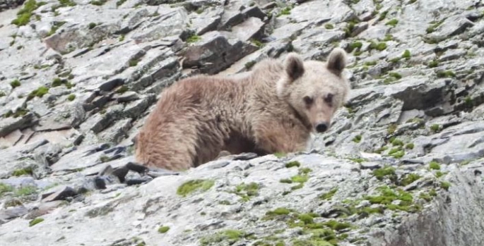 Dağların oğlu lakabıyla bilinen Bülent Erkan, boz ayının dik kayalara tırmanışını görüntüledi.