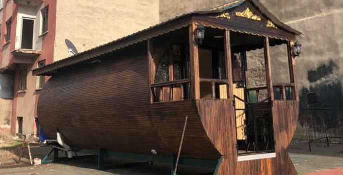 Evde bulunan koltukların kendi tasarımı olduğunu anlatan Tiritoğlu, “Oval oluşu dolayısıyla kendimiz tasarlayarak iskeletini döşeme aksamını kendimiz yerinde yaptırdık. Koltukları açınca çift kişilik yatak oluyor. Koltukların altı büyük bir alan olduğu için saklama alanı olarak kullanılabiliyor” dedi.
