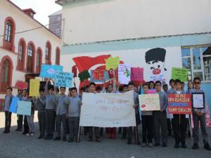 Erzurum'da ilkokul öğrencileri öğretmenlerinin başlattığı proje kapsamında günlük dilde kullanılan yabancı kelimeler yerine Türkçe kelimeler kullanıyor.