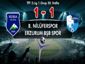 TFF 3.Lig 1.Grup 30. haftasında B. Nilüferspor ile Erzurum Bşb Spor Nilüfer Stadı Stadı'nda bir araya geldi. Karşılaşma beraberlik ile sonuçlandı.