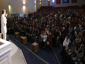 Genel Sekreter Yardımcısı Şahin, çocukluk döneminin, gençlik ve yaşlılık dönemlerinden çok daha geniş bir boyuta sahip olduğunu kaydederek, Çünkü gençlik ve yaşlılık dönemi koşullarının oluşması, aslında çocukluk dönemine bağlıdır. İletişim yönü güçlü, hayal dünyası geniş, pozitif düşünebilen ve ailesinin desteğini sürekli arkasında hisseden bir çocuk, verimli bir gençlik dönemi geçireceği gibi, keza yaşlılık dönemi de pozitif yaşanmış bir hayatı ifade edecektir. Tam tersini düşünecek olursak; karşımıza ruhsal açıdan sorunlu, silik ve özgüvenden yoksun bireyler çıkar ki, bu da toplumsal bir psikoloji sorunu anlamına gelir. Bu nedenle çocuk yetiştirmek, anne ve babalar için sadece bir ödev değil, aynı zamanda bir sanatı da ifade etmektedir diye konuştu.