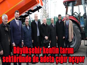 ÇETAŞ Fidan Üretim Merkezinde gerçekleştirilen Erzurum Büyükşehir Belediyesi Tarım Makinaları Parkının açılışında konuşan Erzurum Büyükşehir Belediyesi Genel Sekreteri Ali Rıza Kiremitci, Erzurum Büyükşehir Belediye Başkanımız Sayın Mehmet Sekmenin öncülüğünde şehrin dinamiklerini harekete geçirmeye devam ediyoruz dedi. Tarım ve Orman İl Müdürü Osman Akar da, kentteki tarım faaliyetleri ve hayvan varlığı hakkında bilgi verdi. DAP Bölge Kalkınma İdaresi Başkanı Adnan Demir de, Malumunuz olduğu üzere Erzurum hayvancılık bakımından önemli bir şehrimiz. Fakat hayvan sayısından çok bizim nitelik dediğimiz hayvanı kaliteli yetiştirme konusunda uygun bir ortamı oluşturmamız lazım. Çünkü hayvanın iki önemli çıktısı vardır, bunlardan birisi et diğeri ise süttür kaydını düştü. Hayvan başına süt veriminin ve hayvan başına karkas ağırlığının artırılması en önemli hedefimiz olmalıdır. Onun için süt için et ve süt verimini sağlamak için de bizim yem bitkileri çeşitliliğini artırmamız lazım diyen Başkan Demir, şöyle devam etti: Yem bitkilerini ekmekle iş bitmiyor. Bunun uygun zamanda uygun ekipmanlarla hasadın yapılıyor olması lazım. Özellikle silajlık dediğimiz yem bitkilerinde bunun bir hasat zamanı vardır ve o hasat zamanını geçirmeyecek şekilde yeterli miktarda makine ve ekipman bulundurmak lazım. Bu amaçla, Tarım İl Müdürlüğü ile işbirliği içerisinde bugün bunun devir teslim törenini yapmış olacağız. 2015 yılında Aşkale ilçesine rulo balya paketleme makinesi alınarak bu işe başlanmış olup, ardından yem bitkileri üretimi için 2016 ve 2017 yılında Erzurum ve ilçelerinde toplam 200 ton tritikale tohumu 226 çiftçiye dağıtılarak yaklaşık 10 bin dekarlık alana ekimi sağlanmıştır. Başkanlığımız 15 ili kapsayan bir kurum olmasına rağmen Erzurum ilinde merkezinin olması sebebiyle birçok yenilikçi ve teknolojik desteklerden öncelikle Erzurum ilinin faydalanması adına çalışmalar yürütmüştür. Şu ana kadar Erzurum ili öncelikli olmak üzere bugünkü makinalarla beraber Erzuruma 56 adet tarımsal mekanizasyonla ilgili makinaları çiftçilerimizin hizmetine sunduk. Alınan bu makinelerin kullanımı Erzurum Büyükşehir Belediyemiz tarafından yapılacak olup siz değerli üreticilerin makine taleplerini Belediye Başkanlığımıza sunmaları önem arz etmektedir. Bu makinelerin etkili ve verimli çalışması adına gereken tüm çabaların siz üreticilerce gösterilerek hayvancılığın geliştirilmesi sağlanacaktır. Erzurum Vali Yardımcısı Ünal Coşkun da, şehirdeki tarım ve hayvancılık sektöründe elde edilen ivmenin önemine vurgu yaptı.