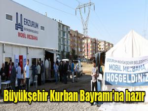 Erzurum Büyükşehir Belediyesi, her yıl olduğu gibi, bu yıl da kurban satış ve kesim işlemleri için özel alanlar oluşturdu. Palandöken ilçe sınırları dâhilindeki İhsan Doğramacı Bulvarı ile Yakutiyeye bağlı Çayırtepe Mahallesi Kuzey Çevre Yolu BOTAŞ yanı mevkii Kurban satış yerleri olarak belirlenirken, kentin 8 ayrı noktasında ise, mobil mezbaha sistemi kuruldu. Kurbanlarını mobil mezbahalarda kestirmek isteyen vatandaşlar için Beyaz Masaya başvuru yapma kolaylığı getirilirken, kesim başvurusu için de, en son gün 10 Ağustos 2019 mesai bitimi olarak belirlendi. Böylece dileyen vatandaşlar, kurbanlarını 350 lira karşılığında mobil mezbahalarda kestirebilecek ve Büyükşehir Belediyesinin sunduğu bu imkândan faydalanabilecekler.