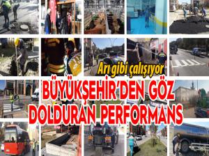 Farklı birimler tarafından sadece bir günde birbirinden farklı 512 noktada yürütülen çalışmalar, Büyükşehir Belediyesinin üstlendiği sorumluluğu gözler önüne sererken, sergilenen bu performans vatandaşlardan tam not aldı.