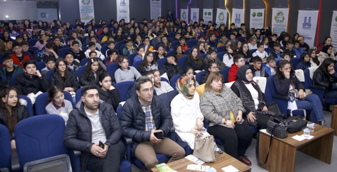 Bilim Erzurum’da toplanan öğrencilere yetkililer tarafından “Sıfır Atık” konusunda çeşitli bilgiler aktarıldı.