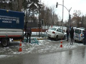 Edinilen bilgilere göre sabah saat 9.00 sıralarında Paşalar caddesinde sürücü Köksal Çalıkın buzlu zeminde direksiyon hakimiyetini kaybetmesi sonucu hafif ticari araç orta refüje çıktı.