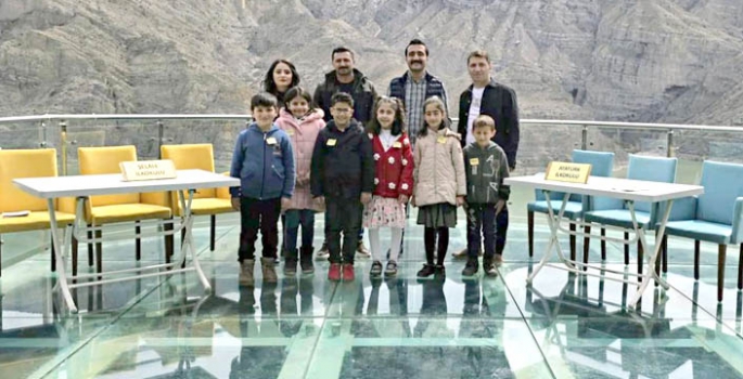 "Tarih Yazan Çocuklar" projesi çerçevesinde, Erzurum'un Uzundere ilçesindeki Tortum Gölü üzerine yaptırılan Türkiye'nin en geniş ve en uzun cam seyir terasında bilgi yarışması düzenlendi.