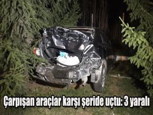 Erzurum'da bir kargo şirketine ait kamyon hafif ticari araca arkadan çarpması üzerine iki araçta karşı şeride geçerek ormanlık alana savruldu. Kazada 3 kişi yaralandı.
