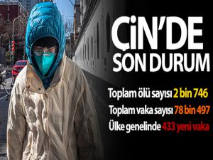 Çin'in Wuhan kentinde ortaya çıkan ve hızla yayılan korona virüsü nedeniyle ülkede hayatını kaybedenlerin sayısının 2 bin 746'ya ulaştığı bildirildi. Çin Ulusal Sağlık Komisyonu tarafından yapılan açıklamada, ülke genelinde 433 yeni vaka kaydedildiği, toplam vaka sayısının 78 bin 497'ye yükseldiği belirtildi. Hubei eyaleti dışındaki vaka sayısının ise 24'e yükseldiği kaydedildi.