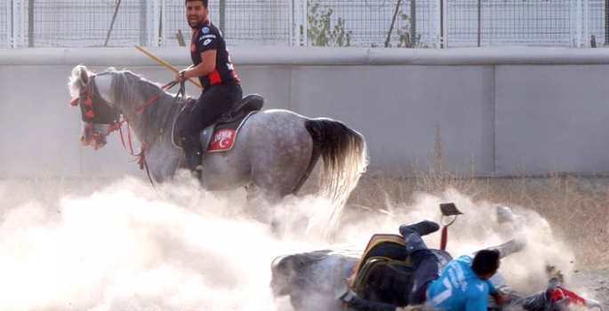 Erzurum’da özellikle hafta sonları meraklıları tarafından heyecanla beklenen ve izlenen cirit maçlarında zaman zaman yürekleri ağza getiren görüntüler de ortaya çıkıyor.