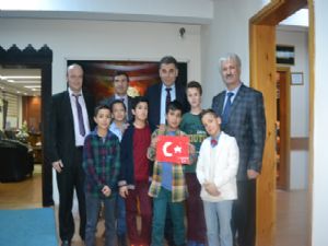 Ziyaret sonunda çocuklar Türk Bayrağının yer aldığı kendi yaptıkları el işi tabloyu Karabörk'e hediye ettiler.