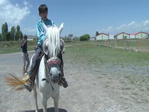 Uzmanlar Binicilik Derneği Erzurum - Erzincan karayolu üzerinde oluşturduğu çiftlikte hem engelli çocuklara terapi tedavisi uygulanıyor hem de çocuklar ata binerek eğlenebiliyor.