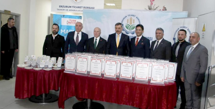 60 coğrafi işaretli ürünle Gaziantep ve Konya'dan sonra gelen Erzurum'da, Türk Patent ve Marka Kurumu Başkanı Prof. Dr. Muhammed Zeki Durak'ın katılımıyla son olarak alınan coğrafi işaretli ürünlerin belgeleri teslim edildi. Programda birer konuşma yapan Erzurum Ticaret Borsası Başkanı Hakan Oral, Erzurum Ticaret ve Sanayi Odası Başkanı Saim Akalın, Erzurum Büyükşehir Belediye Başkanı Mehmet Sekmen ve Erzurum Valisi Mustafa Çiftçi; Erzurum'un sahip olduğu kadim tarihi ve kültürel değerleriyle turizm noktasında hak ettiği noktaya geleceğini ifade ettiler.