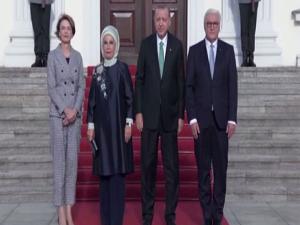 Cumhurbaşkanı Recep Tayyip Erdoğan, ABD'deki temaslarının ardından dün Almanya'ya gelmişti. Dün Almanya'daki sivil toplum kuruluşlarının temsilcileri ile bir arayan gelen ve resmi temaslarına da bugün başlayan Cumhurbaşkanı Erdoğan, Almanya Cumhurbaşkanı Frank Walter Steinmeier tarafından Bellevue Sarayı'nda askeri törenle karşılandı. Liderlere heyetlerin tanıtımının ardından iki ülke marşları okundu. Cumhurbaşkanı Erdoğan, askeri kıtayı selamlamasının ardından Steinmeier ile ikili görüşmeye geçti. İki lider, daha sonra heyetlerarası görüşme gerçekleştirecek.