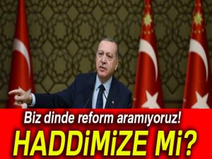 Erdoğan, "İslam'ın güncellenmesi" sözüne de açıklık getirdi: ''Biz dinde reform diye bir şey aramıyoruz. Haddimize mi?'' diye konuştu.