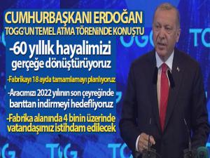 Törende açıklamalarda bulunan Erdoğan,''Fabrikayı 18 ayda tamamlamayı ve aracımızı 2022 yılının son çeyreğinde banttan indirmeyi planlıyoruz'' dedi.