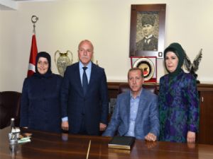 Cumhurbaşkanı Recep Tayyip Erdoğan eşi Emine Erdoğan ile birlikte Erzurum Büyükşehir Belediye Başkanlığı'nı ziyaret etti. Cumhurbaşkanı Erdoğan'ı, Büyükşehir Belediye Başkanı Mehmet Sekmen, Büyükşehir Belediyesi Başkan Vekili Eyüp Tavlaşoğlu, Genel Sekreter Ali Rıza Kiremitci, ESKİ Genel Müdürü Mevlüt Vural, genel sekreter yardımcıları ve daire başkanları karşıladı.